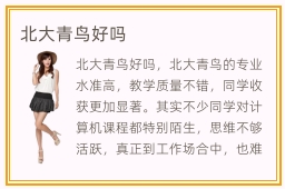 北大青鸟好吗,北大青鸟的专业水准高,教学质量不错,同学收获更加显著。其实不少同学对计算机课程都特别陌生,思维不够活跃,真正到工作场合中,也难以发挥学习优势,导致表现机会非常少。为了改善自己的计算机应用实力,学生可报名水平优越的北大青鸟学校,理解学校的任务、教学的课程以及基本的技术要求。北大青鸟名气如何,北大青鸟的知名度高,就是因为很多学生报名后,可以取得显著的进展,因此给予很高评价,口碑越来越好,知名度自然就会越来越高。另外,北大青鸟精品课程非常重要,假如同学不太理解自己的弱项和技术漏洞,老师会1对1检测,关注学生的进度以及掌握效果,安排精品的课程。这样学习更有方向感,针对性更强,效率自然更高。