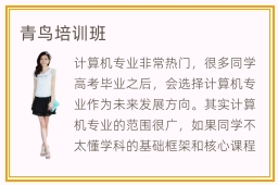 计算机专业非常热门,很多同学高考毕业之后,会选择计算机专业作为未来发展方向。其实计算机专业的范围很广,如果同学不太懂学科的基础框架和核心课程,可以报名青鸟培训班,老师会把重要的课程和学习方式、基本的学习思路展示给大家,同学掌握以后,成绩会好很多。青鸟培训班的水平相当突出,许多学校都会安排课程,结合企业发展需求,展示重要技术,使同学在掌握计算机专业知识的过程中变得更轻松。青鸟培训班的老师有很好的教学能力,为学生的就业过程指明方向,学习完这些课程后,可以找到适合自己的岗位,迅速找到理想工作。当然学生在北大青鸟的指导下,不能掉以轻心,也不要认为得到老师的指导,就能获得进步,应该有独立的思考,学习更多专业知识。