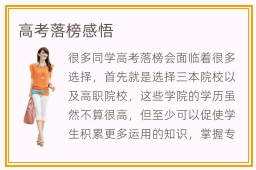 很多同学高考落榜会面临着很多选择,首先就是选择三本院校以及高职院校,这些学院的学历虽然不算很高,但至少可以促使学生积累更多运用的知识,掌握专业技能,在工作上有更好表现。高考落榜感悟非常多,大家也没有必灰心,可以重新调整心态,找到适合自己的出路。三本专科院校靠谱吗,三本专业课有点像相对靠谱,因为学校有清晰的规划,结合企业技能要求以及行业的需要,安排重点课程,培养大量的专业应用人才。高职院校有没有用,高职院校的作用比较明显,比如培养方向很多,能力也比较强,老师认真分析同学的状况后,介绍重要的辅导方式。另外,高职院校也是迅速提高学历的主要方法,高中毕业生在高职院校毕业之后,便可获得大专的学历,满足各种岗位要求。