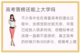 不少高中生在准备高考的漫长过程中,会感觉到比较无奈,毕竟已经投入很多时间,但模拟考试成绩一直都不是很好,真正高考的时候只有300多分,很难考上理想大学。高考落榜还能上大学吗,其实高考落榜生可以选普通的专科院校或者高职院校,职业技术学院等等。学校也有比较好的教学优势,学习的进程比较快,同学吸收效率会更高。三本专科院校有哪些专业,三本专科院校专业很多,其中比较热门的有互联网专业,软件开发专业,设计专业,人工智能专业,电子商务专业等等。当然要想选择较好的专业,首先要挖掘自己感兴趣的领域,不要盲目跟风。高职院校的培训方式主要有专业理论指导以及实践操作指导,促使同学在学校积累更多应用优势,挖掘个人擅长的技术潜力。