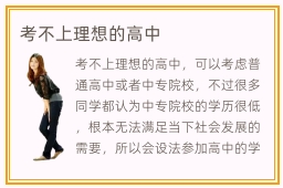 考不上理想的高中,可以考虑普通高中或者中专院校,不过很多同学都认为中专院校的学历很低,根本无法满足当下社会发展的需要,所以会设法参加高中的学习,从而得到高考机会,取得满意的成绩后,便可得到大学的录取通知书。中专学院的学习风气也是比较好的,实力比较强,有很完整的配套设施和教学资源,还有严谨的管理措施。专科学校哪些好,其实不能一概而论,要看每个学校的专业技能,培训方向以及排名情况,综合水准等等。有部分学校水准很高,对学生的要求也很严格,这样学生进步会快一点。在学校学习过程中,要不断了解突破口,找到需要及时弥补的技术漏洞。另外可能有一些学生感觉负担比较重,学习过程没有信心,也不必忧虑,因为老师会照顾到学生的需求。