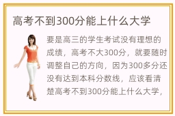 要是高三的学生考试没有理想的成绩,高考不大300分,就要随时调整自己的方向,因为300多分还没有达到本科分数线,应该看清楚高考不到300分能上什么大学,以免影响未来的竞争。职业技术学院有哪些课程,职业技术学院的课程很多,比如实践指导课程、应用项目、理论课程。另外,在训练过程中,老师往往结合专业应用的方向和需求,为同学展示专业技能,学习进度可以迅速提高。专科院校哪些专业好,专科院校专业类型相当丰富,很难界定哪个专业比较好,同学应根据个人的需要和兴趣去挑选,找到更让人满意的类型。另外,专科院校的学历可能比较低,对于很多专科生来说,找工作可能会不太受欢迎。但高中毕业后,直接参加工作,可能会影响竞争力,更难找到理想工作类型。