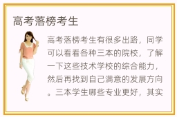 高考落榜考生有很多出路,同学可以看看各种三本的院校,了解一下这些技术学校的综合能力,然后再找到自己满意的发展方向。三本学生哪些专业更好,其实三本院校有很多专业都非常热门,比如计算机专业,人工智能专业,软件专业以及设计专业等。高职院校的教学环境相当不错,不少学生很容易受到周围环境的影响,因此如果在学风懒散的环境中学习,很难集中注意力,也容易跑偏,不太利于成绩的提升。高职院校也很重视学风的建设,因此会营造融洽的教学环境,使大家可以主动学习专业知识,也能相互促进,相互提升。另外,专科院校学生的发展出路很多,比如可以成为企业的白领,或者是到一些课工场做管理者,当然也有一些同学感觉公务员比较适合自己,所以会报考公务员考试。