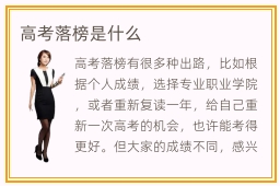 高考落榜有很多种出路,比如根据个人成绩,选择专业职业学院,或者重新复读一年,给自己重新一次高考的机会,也许能考得更好。但大家的成绩不同,感兴趣的领域以及对个人的标准也不太一样,可选择的方向也会有变化。高考落榜是什么,大家要谨慎按照个人的需要以及行业动态、学习的需求等等方面,选择合适的课程。专科与本科区别大吗,专科本科的区别比较大,有些学生在考试的时候只有200分到400分,一般情况下是上不了本科分数线的,只能报考一些专科的学校。专职院校的招生对象很广,比如有些同学很想在就业方面有很强的优势,需要报名职业技术院校,强化个人的水准。这时不妨看看各种专业院校的分数线,针对自己的排名和分数情况,报名合适的学校。