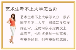 艺术生考不上大学怎么办,很多同学考不上大学,可能是没有发挥正常,这时可以考虑再次上一年高三,也许多参加一些高考,有更多经验,拥有更好的成绩。但如果个人的水平有限,没有办法取得竞争优势,可选择继续升学,比如报考大专院校。技师学院的要求并不会太高,许多高考落榜生只有300多分,都能报名这些院校,也能报考较重要的专业。大专院校门槛高吗,大专院校的门槛不算高,不少学生高考备考阶段没有很好的状态,忽略掉重点内容,导致考试暴露很多缺点,成绩不理想,不得不选择大专院校。不过大专院校的同学需要知道,现在的社会职场竞争环境越来越激烈,学历要求逐渐增高,为了满足工作需要,也为了改善个人文化水平,可以继续升学,考虑专升本。