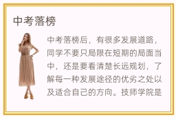 中考落榜后,有很多发展道路,同学不要只局限在短期的局面当中,还是要看清楚长远规划,了解每一种发展途径的优劣之处以及适合自己的方向。技师学院是什么水平,技师学院属于中专和大专,一般技术学院的招生对象包括中考和高考落榜同学。中专学历高吗,中专学历并不是很好,因为很多同学在中专院校毕业之后,可能会面临着被社会淘汰的局面,毕竟有很多工作项目都较为复杂,企业单位都要求较高的学历。如果同学没认真学习,或者是学历特别低,有可能无法找到工作。因此同学拿到中专学历之后,也可以通过成人高考的方法,改善学历背景。不过不管在哪些学校读书,都要不断强化知识技能,才能在工作中有优势,不少同学即便考上名牌大学,但没有努力学习,也照样被社会淘汰。