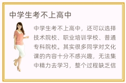 中学生考不上高中,还可以选择技术院校、职业培训学校、普通专科院校。其实很多同学对文化课的内容十分不感兴趣,无法集中精力去学习,整个过程缺乏信心,导致中考成果很不理想,只有两三百分。技术学院有必要上吗,如果个人能力较差,分数非常低,没有办法考上高中,可以考虑技术学院,掌握基本的技能。中专学历是什么水平,中专学历是比较低的水平,很多技术人员都是大专专科以上的学历。要是学生只有中专的文凭,很难在技术岗位上拥有竞争优势,可能在几个月内就会被他人淘汰。为了得到更高的学历,中专学生还可考虑成人本科或者是专升本等等。这些途径比较多学生参加,因此在准备过程中,要努力强化个人技术水平,考试之前做好各种规划,实现自己的目标。