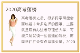 高考落榜之后,很多同学可能会面临着非常多选择的困难,主要就是没有办法考取理想大学,可能只能就读一些普通的院校,而同学往往会有点悲观失望。2020高考落榜也有了其他出路,比如挑选专科院校,重新再考一年,也可以出国留学,总之各种方法的适用人群都不太一样,同学要根据自己的需求而挑选。专科学校招生门槛不算很高,有些同学高考分数只有100分到300分,也可以报名专科学校,但前提条件是要对比专科学校的优劣之处、专业的优势以及就业率等等信息。高考落榜怎么办,高考落榜之后,可以报考某些院校,掌握一技之长,取得更多发展优势。不少学生会挑选某些知名的高中补习班,重新再读一年高三,从而在高考备考中做好充足准备,取得更为理想的分数。