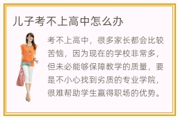 考不上高中,很多家长都会比较苦恼,因为现在的学校非常多,但未必能够保障教学的质量,要是不小心找到劣质的专业学院,很难帮助学生赢得职场的优势。儿子考不上高中怎么办,可以根据考试的排名情况,缩小挑选学校的范围,对比各种大专院校和技术学院的考试分数线。需要知道的是,有些学院的分数线比较低,如果个人的分数不是很差,没有必要选择这些学院。大专院校有什么专业,大专院校的专业类型特别多,比如比较受欢迎的计算机专业、软件应用专业以及设计专业、商务管理专业等等。技术院校能找到好工作吗,技术院校更加注重同学的实践动手能力,打下坚实基础。因此每年都能培养高技能水平的一线专业人员,帮助同学迅速找到好的工作,成为行业的佼佼者。
