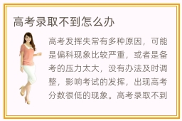 高考发挥失常有多种原因,可能是偏科现象比较严重,或者是备考的压力太大,没有办法及时调整,影响考试的发挥,出现高考分数很低的现象。高考录取不到怎么办,高考没有考上大学,可以选择技师学院或者专业职业技术学院、专科院校等等。虽然说高考总分不理想,但也应多了解各种可能的出路,找到适合自己发展的途径,以免在社会上竞争不如他人。技师学院的教学方式比较丰富,比如现场指导、实践分析、理论教学等等,因为技师院校更加关注同学的应用,也会结合企业的技术要求,安排重点课程,学生掌握会好很多。职业学院的学习氛围很不错,因为职业学院的老师也很强调整个环境的建设,所以会结合充沛的教学资源,鼓励学生应用,促使大家对专业的理解更充分。