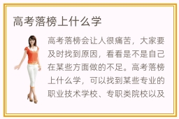 高考落榜会让人很痛苦,大家要及时找到原因,看看是不是自己在某些方面做的不足。高考落榜上什么学,可以找到某些专业的职业技术学校、专职类院校以及专科师范专科、技工学院、技师院校等等。这些学校的综合能力是不错的,有全程的辅导,负责为学生布置许多就业方面的课程。若同学跟上老师节奏,完成各种职业技术的课程,便可得到更多表现机会。专职类院校热门吗,专职类院校当然很热门,因为这些学校的教学成果很优越,每年都能培养大批高品质的专科人才,在各自领域上有良好的发挥。虽然说专职类院校很多,门槛不算高,但大家依然要努力去挖掘自己的优势和兴趣,找到适合个人的发展方向。要是选择过程十分盲目,找不到理想的院校类型,进步速度也会很慢。