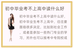 初中毕业考不上高中读什么好,初中毕业生考不上高中,往往要面临很多决定,比如到社会工作,或者是参加一些热门专业的学习,另外也可以报考中专院校或者技工学院等等。中专学校的门槛并不高,很多初中生毕业之后,没有理想的工作,为自己对数理化等知识并不感兴趣,所以会选择中专学校。其实中专学校的教学质量也不错,学习速度比较快,虽然只有三年的时间,但足以让学生掌握基本的技能,在工作上有更优质的竞争力。技术学校好吗,技术学校当然有良好的培训作用,因为学校致力于培养大量初中级的技术人才,学生在各种院校当中,表现出优异的学习成果,成为更好的综合型技术人员。目前的技术学院比较多,学生要谨慎挑选,找到更符合自己目标的院校类型。