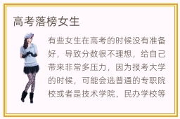 有些女生在高考的时候没有准备好,导致分数很不理想,给自己带来非常多压力,因为报考大学的时候,可能会选普通的专职院校或者是技术学院、民办学校等,可能与自己理想中的差距很大。高考落榜女生可以看看一些重要的出路,比如出国留学,参加各种职业技能训练机构,或者是重新再读一年,选择专科类院校等等。专科院校学历高吗,专科院校学历不算很高,但至少掌握许多应用方面的技能,改善自己的学习水平,提高技术竞争能力。专职类院校报名门槛并不算高,很多同学高考有200分到400分,还没有达到本科分数线的高度,不得不选专职类的院校。这些学生报名专职院校后,只要认真学习,往往都会获得非常好的成绩,专业水平大大提高,不断完善技术的课程。