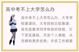 高中考不上大学怎么办,大专学校靠谱吗,大专院校比较靠谱,首先是要求同学有良好技能,打下坚实基础,开发个人潜能,从而拥有更多优势。许多工作都要求专科或者本科以上学历,要是同学连基本的专科学历都没有,以后的就业能力会大不如人。大专院校哪些专业热门,很多专业都比较热门,比如计算机专业,人工智能专业,机器人专业,软件专业,法律专业以及艺术设计专业等。不过需要知道的是,专业类型很多,要根据个人的实际情况和兴趣爱好等等角度进行筛选。有些同学从来都不注意个人潜力的挖掘,也不了解个人兴趣,挑选专业时盲目跟风。另外同学除了要利用时代大环境红利之外,还要有个人的学习,认真投入学习时间,从而优化个人的技术水平和学术背景。