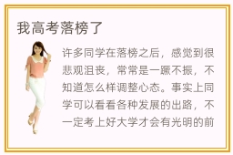 许多同学在落榜之后,感觉到很悲观沮丧,常常是一蹶不振,不知道怎么样调整心态。事实上同学可以看看各种发展的出路,不一定考上好大学才会有光明的前景,可以对比不同的发展方向,包括学习大专院校的课程,或者出国留学等等。我高考落榜了,不妨看看技术师范学院和大专院校,当然如果考试没有考好,与平时的成绩还差远,可以适当关注复读的学校。有必要读技师学院吗,其实技术师范学校的教学能力也不错,很多同学在报名谁说的?课程之后,都能迅速获得优势,取得很好的进步,为未来铺平道路。大专院校的学历是什么水平,大专院校的学历是属于中高的水平,不过现在国内扩招已经很长时间,很多同学都有硕士、博士等等学历,所以大专学历也逐渐黯然失色。