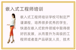 嵌入式工程师培训学校可制定严谨课程,培养很多优秀的学生,快速在嵌入式软件领域中取得很好的发展,从而晋升为高级的工程师或者是产品研发人员,技术工程师等等。要是同学可以找到嵌入式工程师的专业机构,进步的效果会更好。嵌入式工程师负责什么任务,嵌入式工程师的工作任务主要分为两个方面,首先是操作系统方面,利用一些系统开发应用的知识,完成软件的功能。另外是硬件方面,应用更广,待遇也相当不错,通常有驱动硬件,操作系统硬件,驱动程序硬件。嵌入式工程师的技能要求比较多,首先要掌握许多计算机编程语言,包括c语言、汇编语言,熟练模拟电子技术等等硬件的知识,理解处理器的体系结构,掌握硬件系统的建立,软件开发与移植软件调试等等技能。