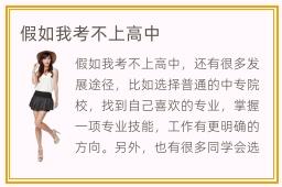 假如我考不上高中,还有很多发展途径,比如选择普通的中专院校,找到自己喜欢的专业,掌握一项专业技能,工作有更明确的方向。另外,也有很多同学会选择出国留学,经过雅思的托福之后,可以报考外国的高中院校。中专有哪些热门专业,中专的热门专业很丰富,比如计算机专业,建筑专业,软件工程专业,人工智能专业,以及设计专业等。这些专业热度高,竞争压力较大,同学要有过硬的技术,才能在众多同事中脱颖而出。中专院校就业难度并不算高,因为中专院校的学生也可以找到很多基础性的工作。但是要知道,中专院校的学历比较吃亏,如果想要在某个行业中有更大的发展,中专院校的学生往往在技术层面上可能不如他人,很难拥有理想的优势,因此大家要多多准备。