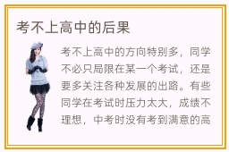 考不上高中的方向特别多,同学不必只局限在某一个考试,还是要多关注各种发展的出路。有些同学在考试时压力太大,成绩不理想,中考时没有考到满意的高中,很容易陷入困境当中。考不上高中的后果不是很严重,毕竟还比较年轻,还有非常多种发展道路。同学也可以报名某些中专技术学院,知名的专科院校等等。不过某些专科院校的学历并不算高,在找工作时很容易被拒绝,这时可以考虑重新读一年初三,或者找到普通的高中,努力准备考试,争取在高考中实现逆袭。技术学院很多人报名吗,技术院校也有很多同学报名,多数是一些落榜生。专科学校的环境如何,专科院校的环境也不错,学风比较严谨,很多同学都会主动学习,做好充分的准备,工作上有更出色的表现。
