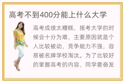 高考成绩太糟糕,报考大学的时候会十分为难,主要原因就是个人比较被动,竞争能力不强,容易被名牌学校淘汰。为了比较好的掌握高考的内容,同学要奋发向上,努力积累学习经验,提高学习的水平,减少技术漏洞。但有些人已经付出很多精力,但考试还是很不理想,高考不到400分,让人感觉很困惑。高考不到400分能上什么大学,一般可选择技师院校、专业学院、职业技术学校等等。这些学校的综合实力都比较强,专业水准高,更加注重企业就业的结合。技师学院的学历不错,有些学生从技师院校毕业之后,可以得到专科的学历,找工作也要多一种优势。专科院校有哪些,专科院校的教学严谨,课程安排多元,同学在专科院校的指导下,也能积累应用经验,收获技术成果。