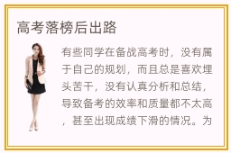 有些同学在备战高考时,没有属于自己的规划,而且总是喜欢埋头苦干,没有认真分析和总结,导致备考的效率和质量都不太高,甚至出现成绩下滑的情况。为了得到比较好的发展机会,同学要认真理解各种考试内容,不要总是死记硬背。另外,如果高考失败,也没有必要灰心,因为还有很多高考落榜后出路。三本专业院校多吗,三本院校非常多,很多高中毕业生会选高级的专科院校,帮助自己优化学习的能力,掌握工作技能。高职院校靠谱吗,高职院校很靠谱,有明显的培养方向,教学水准量高。但有些同学认为高职院校的学历太低,没有很高的含金量,所以会放弃。不过大家不用害怕,毕竟很多同学在高考落榜之后,也能够找到其他方面的出路,比如出国留学或者是报名某些职业培训辅导班。