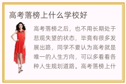 高考落榜之后,也不用长期处于悲观失望的状态,毕竟有很多发展出路,同学不要认为高考就是唯一的人生方向,可以多看看各种人生规划道路。高考落榜上什么学校好,一般可考虑技术学院、专职类院校以及职业学院、专科师范类学校等。因为很多同学对师范类学校感兴趣,不妨多了解这些学校的综合能力以及排名情况、学习的作用等等。技术院校的作用相当显著,为同学开拓发展项目方向,培养大量高水平的人才。专职类院校好不好,专职院校的技术含量比较高,会根据同学的自身条件以及兴趣爱好、能力特长等等方式,挑选合适的教育方法。当学生要想拥有较强的能力,首先要有足够的时间,研究专业领域的课程,深入理解专业内容,也要强化个人的逻辑思维、形象思维和操作水准。