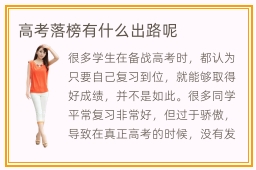 很多学生在备战高考时,都认为只要自己复习到位,就能够取得好成绩,并不是如此。很多同学平常复习非常好,但过于骄傲,导致在真正高考的时候,没有发挥出自身的水平。另外,也有一些同学没有认真读题,本来是会做的题目,但却没有写出正确的答案,会影响考试总分。高考落榜有什么出路呢,高考落榜之后的出路,很多同学可以适当关注某些职业技术学院或者是出国留学。当然也有同学成绩很好,只不过突然在某个科目中发挥失常,可以考虑一下复读,重新给自己一次高考的机会。专科学校的招生门槛不会很高,许多考试成绩不理想的高中毕业生可以看看专科院校的具体分数线。专职院校有哪些课,一般有专业的理论课程,就业指导的课程,实践项目课程等等,作用也很好。