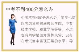 中考不到400分怎么办,同学也可以考虑某些普通技师学院,中专技术学校,职业学院等等。不过也有同学是因为发挥失常,没有在考试当中表现正常的水平,导致考试成本低。这时可考虑重新读一年初三,获得重新中考的机会,也许能考上比较好的高中。不过不想重新读初三也没有关系,可以选择继续升学,看看某些招生门槛比较低的普通高中。技师学院入学门槛不算高,很多同学中考总分只有100多到300多,都可以报名技师学院,然后找到自己喜欢的专业。中专技术学校好不好,中专技术学校的综合能力一般都不算很强,大家在挑选的时候,要看清楚这些学校的专业水准和教学口碑。而且在工作方面,很多学历要求都是硕士和博士,所以同学不要满足于中专的学历,要想方法改善学历水平。