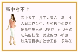 高中考不上并不太适合,马上投入到工作当中,多数初中生或者是高中生只是10多岁,还没有很成熟的技能,就业能力不够强,如果盲目参加社会工作,很难在竞争中脱颖而出。另外,大多数工作职位都要求较高的学历,所以同学在10多岁的阶段,应该以学习为主,掌握重要的技能。中专学校的老师相当优越,很多老师的水平都很高,提供专业资源,有很完整的课程,与同学分享工作经验。有必要报名中专院校吗,不少同学成绩不太好,认为自己没有办法考取名牌大学,初中毕业之后会选择中专院校。其实中专院校有利有弊,因为中专院校学历不算高,找工作时可能会面临被拒绝。当然若是学生的成绩比较普通,可以报名一些中专院校,掌握一项技能,职场竞争中会更有优势。