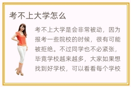 考不上大学是会非常被动,因为报考一些院校的时候,很有可能被拒绝。不过同学也不必紧张,毕竟学校越来越多,大家如果想找到好学校,可以看看每个学校的综合能力、师资力量、教学水平及教学培训目标等等。考不上大学怎么,可以报名高等职业学院,三本院校、技工学院、职业技术学院等等,虽然说不见得都是好学校,但至少帮助大家掌握技能,提高个人的学历,也能满足企业招聘的标准。高等职业学院的招生对象比较广,比如许多高考或中考成绩比较普通的学生,无法达到本科分数线,可考虑三本的院校。三本院校好不好,三本院校的学历比较普通,同学也不能太过于放松,在报名专科院校之后,要多多强化个人能力,调动自己的积极性,学习一些基础课程和难度较高的课程。