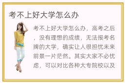 考不上好大学怎么办,高考之后,没有理想的成绩,无法报考名牌的大学,确实让人很担忧未来前景一片茫然。其实大家不必忧虑,可以对比各种大专院校以及技术学院、技师院校的优劣之处,然后再挑选优质专业类型。大专学校的要求高吗,大专学校的要求严谨,很多同学经过三年的准备后,可以成为一个非常优秀的技术专员,为社会贡献一道力量。专科学校的教学水准相当好,但是需要知道,每个专业学院的配套设施以及教学侧重点、老师的水平等等不同,教学成果也有差别,大家在选择学校时,要看一下这些角度。同学报名专科院校以后,可能会害怕学历不如本科院校,事实上专科同学只要花足够的时间准备,提高专业的水平和工作的能力,个人的发展前景还是很广阔的。
