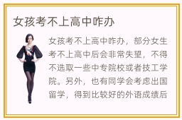 女孩考不上高中咋办,部分女生考不上高中后会非常失望,不得不选取一些中专院校或者技工学院。另外,也有同学会考虑出国留学,得到比较好的外语成绩后,可以申请国外知名的高中。中专院校的专业很丰富,比如大家很喜欢的设计专业,建筑专业,软件开发专业,人工智能专业等等。高等专科学校受企业认可吗,高等专科学校也是受企业认可的,很多企业在招聘时,都需要专科以上学历。要是学生没有这些学历,连应聘都会变得很艰难,更不要说在职场中发挥个人价值。当然同时要想不被他人淘汰,还应该要努力尝试更多新的知识,因为工作技术要求越来越高,学历门槛也不断在提高。所以同学要努力接触新内容,改善技术水平,开拓个人视野,从而获得技术的进步和发展空间。