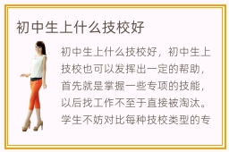 初中生上什么技校好,初中生上技校也可以发挥出一定的帮助,首先就是掌握一些专项的技能,以后找工作不至于直接被淘汰。学生不妨对比每种技校类型的专业实力、教学的方法以及学习内容,针对自己的兴趣以及未来发展方向,挑选合适的专业。技校的教学成果也比较突出,很多学生经过两年到三年左右的学习之后,可以熟练掌握一门技能,顺利进入到行业比较中级的阶段,积累更多应用的经验。技校怎么选,很多同学选择技术院校的时候,都会参考教学的方案以及培训时间等等。不少学生感觉进度很慢,自学能力不够强,缺乏自主思考的能力,都可以由技校的老师安排课程,规划学习的任务,促使大家拥有更多收获。当然前提是要有自己的学习和思考,不要依赖学校老师。