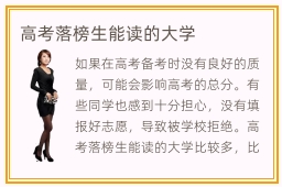 如果在高考备考时没有良好的质量,可能会影响高考的总分。有些同学也感到十分担心,没有填报好志愿,导致被学校拒绝。高考落榜生能读的大学比较多,比如专职院校,高等职校以及技术学院。不过同学报名这些大学的时候,要看清楚各种专业的类型。因为有部分专业并不是很热门,可以用冷门来形容,刚毕业之后就要面临失业风险,大家要谨慎对比。高等职校有哪些优势,高等职校的优势在于综合水平比较高,学校的竞争力也相当不错,很多学校都能达到90%以上的竞争力,同学也非常满意。专职院校有没有竞争优势,专职院校的竞争优势也相当显著,同学可根据个人基础条件以及能力,特长,兴趣爱好等等方向,找到合适的技术学校和专业类型,为以后的职业发展打下基础。