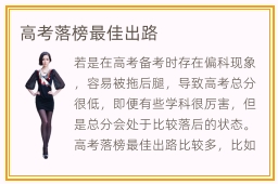 若是在高考备考时存在偏科现象,容易被拖后腿,导致高考总分很低,即便有些学科很厉害,但是总分会处于比较落后的状态。高考落榜最佳出路比较多,比如重新复读一年,或者是到国外深造,也有部分同学选择高职院校和技工学校,同样也有很多优势。技工学校师资力量雄厚,教学能力强,制定许多辅导规划,帮助同学解决专业应用难题,学习速度会明显提升。高职院校的等级比较不错,高职院校属于大专学历,可帮助学生找到符合自身标准的学习方案。同学在高职院校努力学习,提高竞争优势,工作机遇会变得更多。当然不少同学都认为专科院校的学历并不是很高,找工作会面临很多难以抉择的时刻。这时找到专升本的途径,达到本科的水平,往往就能得到企业认可。