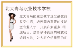 北大青鸟的主要教学理念是教育改变生活,培养国内重要的技能型专业人才,开展许多重点IT训练项目,结合多种管理的模式和培训方法,为大家介绍重要的IT知识。很多同学对计算机应用知识的学习进程都不够满意,没有完善的学习计划,容易漏掉重点知识。辅导机构可以解决这些问题,为学生查漏补缺,扫清技术学习的障碍。北大青鸟职业技术学校有很好的优势,服务的范围很大,为不同的人群提供优质的指导措施,从而赢得更多机会,得到社会各界的认可。北大青鸟好吗,北大青鸟知名度高,成果也不错,深受学生的关注。职业技术学校怎么选,挑选职业技术学院时,应该看清楚培训的方法以及教学力量、教学团队的优劣之处等等。不少职业技术学院的拥有相当充沛的资源,师资力量雄厚,值得学生期待。