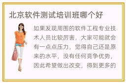 如果发现周围的软件工程专业技术人员比较厉害,大家可能就会有一点点压力,觉得自己还是原来的水平,没有任何竞争优势,因此希望做出改变,得到更多的收获。而辅导机构会帮同学加快学习步伐,提供多种训练的思路和方案,使大家能快速得到提高。北京软件测试培训班哪个好,要分析几个因素,包括教学实力,培训方法,课程类型。软件测试教学机构教学方法比较丰富,包括网络平台的指导,小班的辅导,1对1辅导等。若个人的时间不太够用,想要加快学习节奏,掌握更多的软件工程知识,可以考虑1对1辅导。这些辅导方案的针对性特别强,让同学更了解自己的问题,找到许多改善的方法。软件测试工程师有没有前景,其实很多行业的前景都不错,待遇高,而且工作机会多。