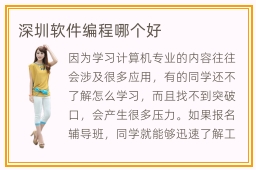 因为学习计算机专业的内容往往会涉及很多应用,有的同学还不了解怎么学习,而且找不到突破口,会产生很多压力。如果报名辅导班,同学就能够迅速了解工作应用的前沿知识,得到更多的突破。深圳软件编程哪个好,对于很多基础很差的学员,可以着重关注一些基础教学的课程比较好的辅导机构,不仅有更好的成果,能减少学习负担。软件编程培训编程培训班学费要多少钱,因为同学们需要报名的课程,学习的方法不一样,费用会有差别。有的同学会选劣质的辅导机构,这些辅导机构的教学水平不高,设备不够充足,老师的专业水平也比较差,教学效果可能就会不太理想,所以要谨慎挑选,不要盲目跟风。软件编程老师厉害吗,多数老师都比较厉害,课程也很全面,对同学帮助相当大。