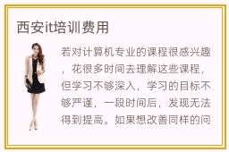 若对计算机专业的课程很感兴趣,花很多时间去理解这些课程,但学习不够深入,学习的目标不够严谨,一段时间后,发现无法得到提高。如果想改善同样的问题,可以关注重要的课程,完成训练的项目,获得更多提高。西安it培训价格一般在4000~19800,但只是大概的范围,如果同学想要找到好学校,应该去关注师资力量和教学口碑,不能只看到费用。it教育机构小班课程有帮助吗,多数辅导机构的小班课程都很有帮助,可以深入挖掘的同学的问题,介绍许多理论培训和应用培训的课程,同学在学完后会有更扎实的基础,也会有比较强的应用水平。不过在学习期间,不能只依赖辅导机构,还要有自己的思考,整理知识框架,才能让成绩越来越好。it学校的老师很强,教学水平也不错。
