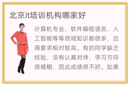计算机专业,软件编程语言,人工智能等等领域知识都很多,应用要求相对较高。有的同学缺乏经验,没有认真对待,学习方向很模糊,因此成绩很不好。如果想获得突破,同学可以选择优质的辅导班。很多专业的辅导机构会帮同学节省精力,也能减少学习的压力,使大家的水平越来越高。北京it培训机构哪家好,要看师资力量,教学方式,教学课程等等。it训练机构老师厉不厉害,很多专业的老师都有良好的教学能力,辅导的方向很明确,解决同学的实践问题。如果同学有兴趣,都可以学习这样的课程,然后一步步达到更高的水平。但需要知道,辅导机构逐渐增多,不是每一个学校都有很好的师资水平,学生也要谨慎筛选。it1对1辅导有特别好的作用,比如老师会挖掘同学的问题,改善同学的专业实力。