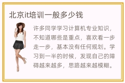 许多同学学习计算机专业知识,不知道哪些是重点,喜欢看一步走一步,基本没有任何规划。学习到一半的时候,发现自己的障碍越来越多,思路越来越模糊。大家要想获得提高,有很多种方法,其中一种就是选择优质辅导班,老师会介绍不同的项目,解答多种专业难题,实现更多的突破。北京it培训一般多少钱,多数学校的收费并不固定,一般是5500元到15800元。it教育机构费用如何。要想快速提高成绩,可以多了解各种学校的教学优势,辅导方法,课程重点等,然后再选择合适的培训课程,确定大概的费用。如果选择教学效果不太好的选择,优势无法凸显,同学收获可能就会比较少。it1对1教学很重要,首先就是效率特别高,使同学有更清晰的目标,不用担心效率低的问题。