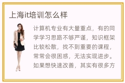 计算机专业有大量重点,有的同学学习思路不够严谨,知识框架比较松散,找不到重要的课程,常常会很困惑,无法实现进步。如果想快速改善,其实有很多方法,其中一种是报名教育机构。上海it培训怎么样,很多同学都能在老师的指导后获得很多优势,减轻学习的烦恼。大家在学习的过程当中,可以着重关注这些学校,从而取得更多的突破。it教学机构报名费多少钱,报名费并不固定,大概是5000~18000元。刚刚学习这些课时,如果觉得成绩不算好,或者专业水平不高,可以从简单的技术内容开始。若成绩比较好,对自身有更高要求,学习高难度的应用项目,学习的时间比较长,难度较高,费用也会提高。it有哪些技能,主要的技能就是软件开发,程序应用,网络技术优化,对将来发展有重要价值。