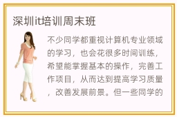 不少同学都重视计算机专业领域的学习,也会花很多时间训练,希望能掌握基本的操作,完善工作项目,从而达到提高学习质量,改善发展前景。但一些同学的学习质量比较差,学习方向模糊,成绩始终不太好。深圳it培训周末班有很多好处,让同学积累更多经验,也利用好周末的时间,让生活更加充实。要是大家有兴趣,都可报名这些课程,得到更大的提高。it指导班靠谱吗,很多辅导班的教学水准都很高,对同学要求也很严格,有完整的课程体系,利用多方位的辅导方法,为同学展示多种课程。同学如果认真学习,跟上老师的节奏,完成这些训练项目,成绩会有不错的改善。it辅导班的主要作用主要的是提高学习效率,节约大量学习时间,分享很多经验,使同学轻松应对各种难题。