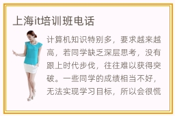 计算机知识特别多,要求越来越高,若同学缺乏深层思考,没有跟上时代步伐,往往难以获得突破。一些同学的成绩相当不好,无法实现学习目标,所以会很慌张,希望由辅导老师一步步带领自己,快速接触前沿的内容。上海it培训班电话,it教育机构零基础教学特别重要,因为很多同学还不知道怎么学习这些知识,许多情况下都无法获得进步,长时间处于很被动的状态。但是报名辅导机构后,大家的成绩会越来越好,专业水平更突出,将来的表现也会更优越,不用担心成绩差的问题。it找工作的压力大吗,技术工作者找工作压力不算大,但在找到工作之后,大家要有严格要求,认真学习重要的经验,把握市场行情,从而拥有更多进步,如果满足于现状,工作之后可能会有被淘汰的风险。