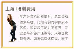 学习计算机的知识时,总是会有很多难题,比如有的同学积累不够多,或者应用能力不够强,专业思维不够严谨等等,成绩也比较普通。如果想快速提高,同学可选择专业机构,把这些知识掌握好。上海it培训费用综合来看并不算很高,如果是入门级的课程可能在3500元到7000元,那如果是高阶课程,可能要1万到2万元。it培训班网络课程有帮助吗,网络课程有很好的教学效果和效率,老师会根据同学们的实力安排个性化课程,激发同学的动力和创造力,对这些内容有更多深入的思考,也更主动学习相关的知识。老师往往非常注重同学的时间安排,若同学时间太少,可以和老师取得联系,然后由老师调整学习计划。it找工作容易吗,技术工作者可以找到许多满意的岗位,比如软件开发工程师,软件设计师。