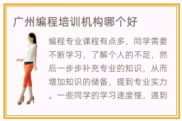 编程专业课程有点多,同学需要不断学习,了解个人的不足,然后一步步补充专业的知识,从而增加知识的储备,提到专业实力。一些同学的学习速度慢,遇到问题总喜欢躲避,成绩一直很不好,为了快点做改变,同学可以选择一些课外辅导班,由老师安排课程。广州编程培训机构哪个好不是固定,要看师资力量和课程类型,如果师资力量雄厚,教学效果往往好很多。编程辅导班零基础难不难,零基础训练课程并不会有太高的难度,老师会深入浅出,帮同学进行详细的介绍,还能随时调整学习节奏,同学感觉到学习状态很好,也能加快学习步伐,得到更多学习乐趣。不过大家在训练时,要重视自己的问题,找到合适的学习方法,不要漫不经心。编程有什么课程,主要有编程语言语法,编程,应用规则等等。
