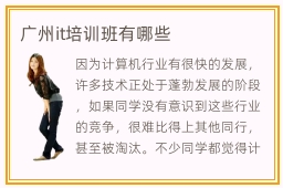因为计算机行业有很快的发展,许多技术正处于蓬勃发展的阶段,如果同学没有意识到这些行业的竞争,很难比得上其他同行,甚至被淘汰。不少同学都觉得计算机行业的内容太难,学习要求也更多,因此想报名辅导班,完成重要的课程任务,成绩就会越来越好。广州it培训班有哪些课程,主要有软件技术,网络优化,程序设计应用。it指导机构收费是多少,其实收费不能够固定,主要看学校的口碑和教学效果,一般在4500元到15400元。有的同学选择一些劣质的辅导机构,没有很好的教学效果,还出现很多问题,如果盲目选择,不仅会带来许多障碍,学习成果也让人失望。it课程容易吗,很多计算机专业的课程都不算难,大家如果有兴趣,可以报名辅导班,从而取得更多的提高。