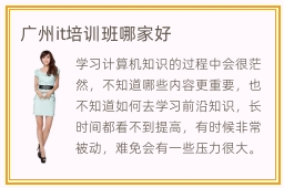 学习计算机知识的过程中会很茫然,不知道哪些内容更重要,也不知道如何去学习前沿知识,长时间都看不到提高,有时候非常被动,难免会有一些压力很大。大家可选择报班,找到重要的学习方案,这样可以凸显出更好的教学优势。广州it培训班哪家好,要看学校的综合排名,教学方式,课程质量等。it就业辅导班辅导方式的哪些,一般情况下,老师会介绍多种辅导方式,其中较为欢迎的就是网络辅导,1对1辅导,小班授课等。如果同学时间太紧迫,业余时间太少,可考虑网络课程,既不用受到地点限制,又可以随时打开手机就能学习,这是一举多得。it专业要求高吗,整体的工作要求比较多,难度也在提高,竞争压力逐渐增大,大家要多花时间,完善知识结构,不要漫不经心。
