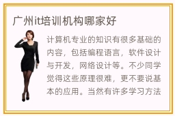 计算机专业的知识有很多基础的内容,包括编程语言,软件设计与开发,网络设计等。不少同学觉得这些原理很难,更不要说基本的应用。当然有许多学习方法,其中一种就是挑选专业的机构,老师会分享学习经验,介绍许多高效率的学习方式,使大家能在有限的时间里掌握到更好用的知识。广州it培训机构哪家好,要分析教学方式,培训质量,课程类型。it学校的实力好吗,很多辅导班的实力都特别强,一方面是老师很专业,课程安排也非常整理,另一方面是辅导效率高,学员能快速看到进步,动力也更加充足。其实刚开始学习,许多同学都很谨慎,害怕没有方向,但老师利用多年经验,结合工作要求,安排由浅入深的训练计划,使大家的思路更清晰。it专业的要求高不高,该专业领域要求越来越高,大家要花多一点时间。