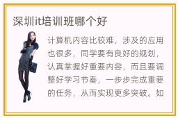 计算机内容比较难,涉及的应用也很多,同学要有良好的规划,认真掌握好重要内容,而且要调整好学习节奏,一步步完成重要的任务,从而实现更多突破。如果成绩无法提高,可选择优质的机构,完成重要项目,提升工作水平。深圳it培训班哪个好,一般要看教学方式,培训内容,课程指标等等。it教育机构大概要多少费用,大概收费是5500元到14500元,收费有多个影响因素,包括教学口碑,学习效果,师资力量等。如果同学选择不太好的学校,口碑比较差,师资力量很普通,就算收费再便宜,也往往不太值得。因为效果会大打折扣,学习进度减慢,耽误学习进程。it辅导班有没有用,多数辅导班都有多种好处,老师的教学方式很灵活,整个学习氛围很好,同学的收获也非常大。