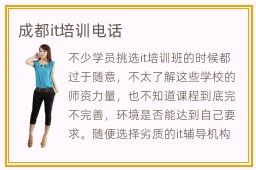 不少学员挑选it培训班的时候都过于随意,不太了解这些学校的师资力量,也不知道课程到底完不完善,环境是否能达到自己要求。随便选择劣质的it辅导机构,都影响学习效率,甚至还浪费时间和金钱。大家可以在报班之前打听清楚,针对自己的需求和目标选择靠谱的机构,有必要的情况下可以拨打成都it培训电话。it辅导配套设施如何,其实要看学校的重视程度,有的学生认为现在的IT技术行业与应用保持紧密的联系,所以会专门投入资金,准备好配套设施,为大家创造更好的应用项目的学习条件。it技术员的发展现状总体来说是相当不错的,尽管每一年都有大量的it毕业生,但是行业内也一直都有非常大的需求量,但如今公司的选择越来越多,所以对人才的标准更加苛刻。